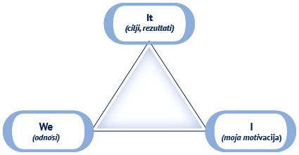 Pozanimajte se o naših novih programih razvoja vodij, ki temeljijo na pristopu zavednega voditeljstva. Pristop na seminarjih in delavnicah zavednega voditeljstva temelji na enakovrednem razvoju treh skupin ciljev, ki jih ponazarjajo tri oglišča trikotnika: stvarni cilji (It nivo) v obliki trdnih poslovnih rezultatov, odnosni cilji (We nivo) v obliki kakovosti in količine sodelovanja vpletenih ter osebni cilji posameznika (I nivo), v obliki lastne motivacije in zavzetosti posameznika.