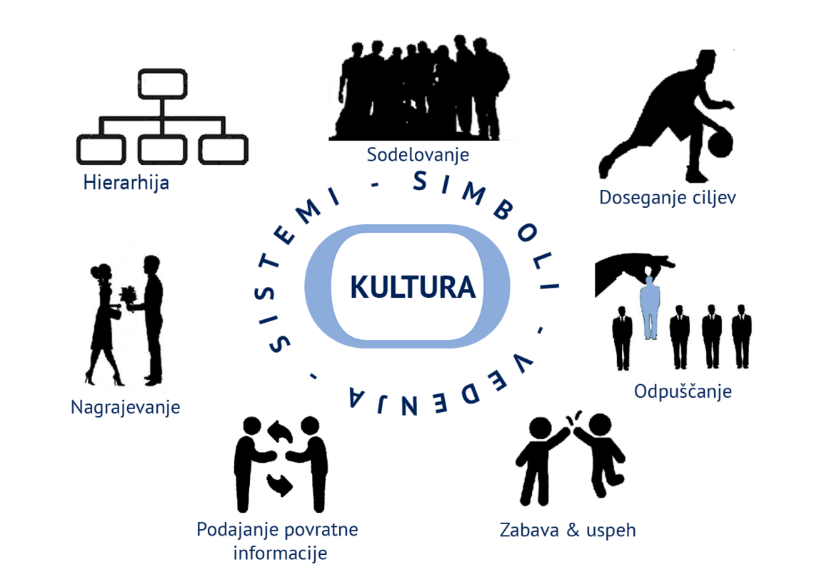 Kulturo v podjetju narekuje vrhnje vodstvo, sooblikujejo pa jo vsi zaposleni. Prepoznavamo jo preko konkretnih vedenj, ki podpirajo ali spodbujajo vrednote podjetja, preko sistemov (npr. sistem nagrajevanja, sestankovanja, ...) in simbolov (npr. prodajalec meseca, komunikacijska tabla, logotipi, ...).